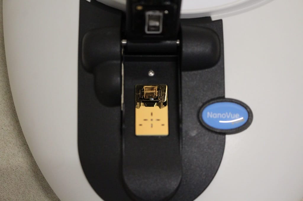 The NanoVue Plus Spectrophotometer is a user-friendly and reliable instrument for measuring nucleic acid and protein samples. Samples from 0.5 μL to 5 μL can be pipetted directly onto the gold-coloured sample plate for measurement and then easily recovered with a pipette. If sample recovery is not required, the sample plate can be quickly and easily wiped clean.