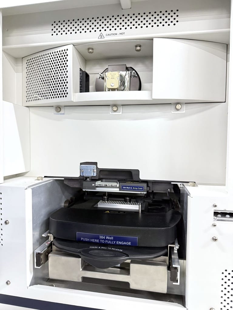 The system is fully compatible with standard and fast-cycling 96- and 384-well plates, as well as with TaqMan™ Array Micro Fluidic Cards and reagents—ideal for both small and large labs seeking high productivity.