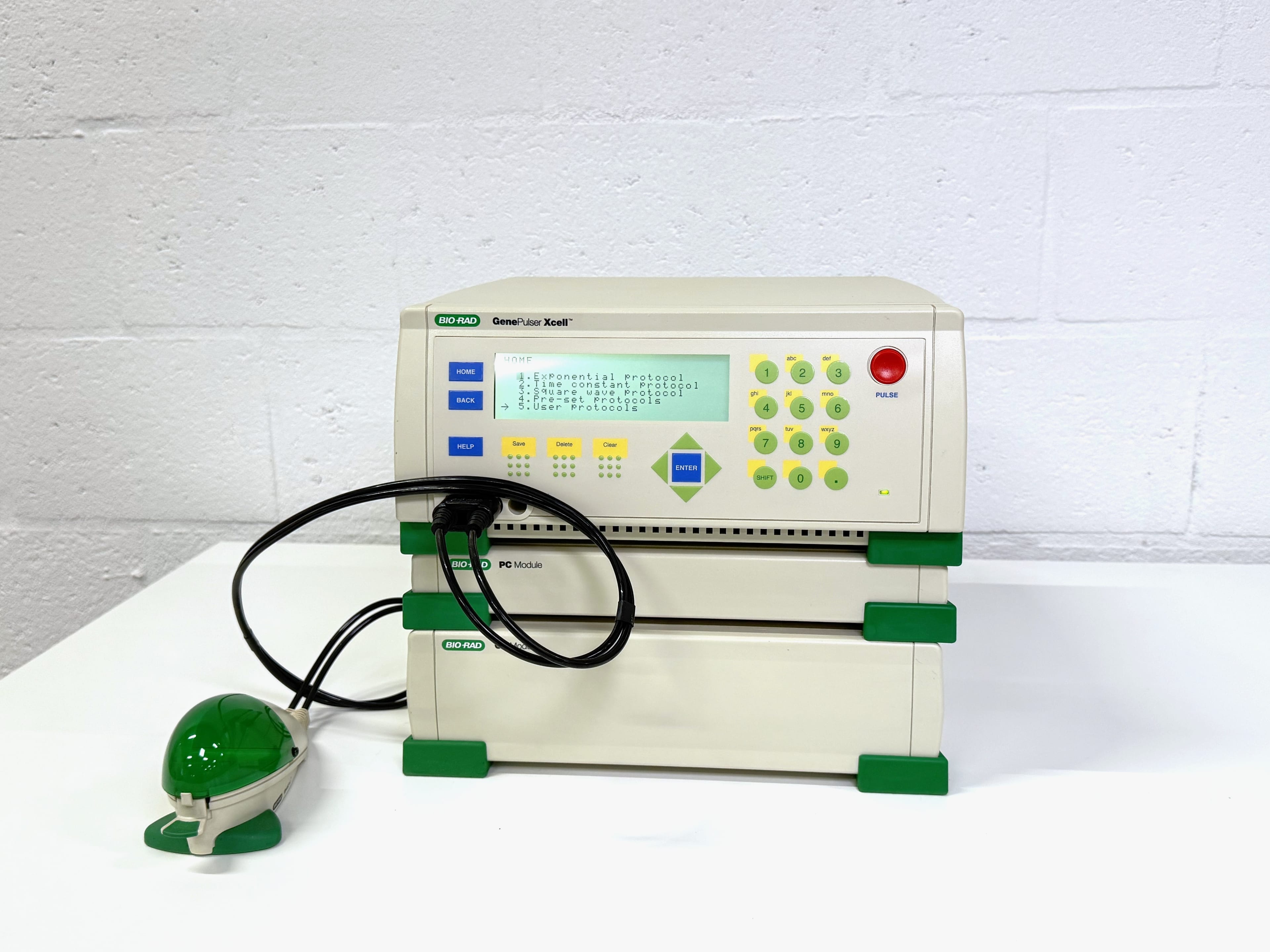 The Gene Pulser Xcell system is a flexible, modular electroporation system for transfecting any cell type, from primary, suspension and difficult-to-transfect cells, including T-cells, to bacteria and fungi. The system consists of a main unit, two accessory modules, the capacity extender (CE module) and pulse controller (PC module) and a ShockPod cuvette chamber.