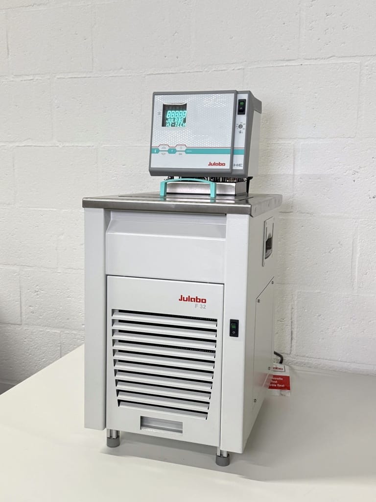 The JULABO F32-HE (HighTech) is a high-performance refrigerated/heating circulator for precise temperature control in the bath or connected external applications. It delivers stable, reproducible results across a wide working range.