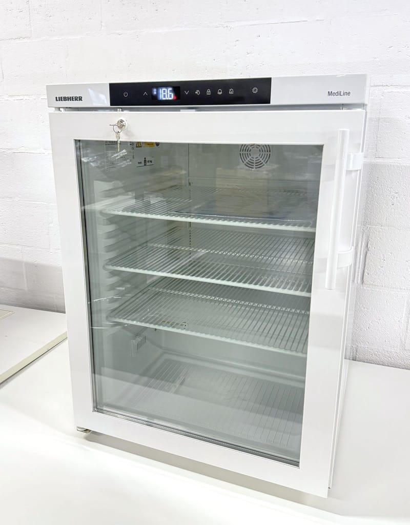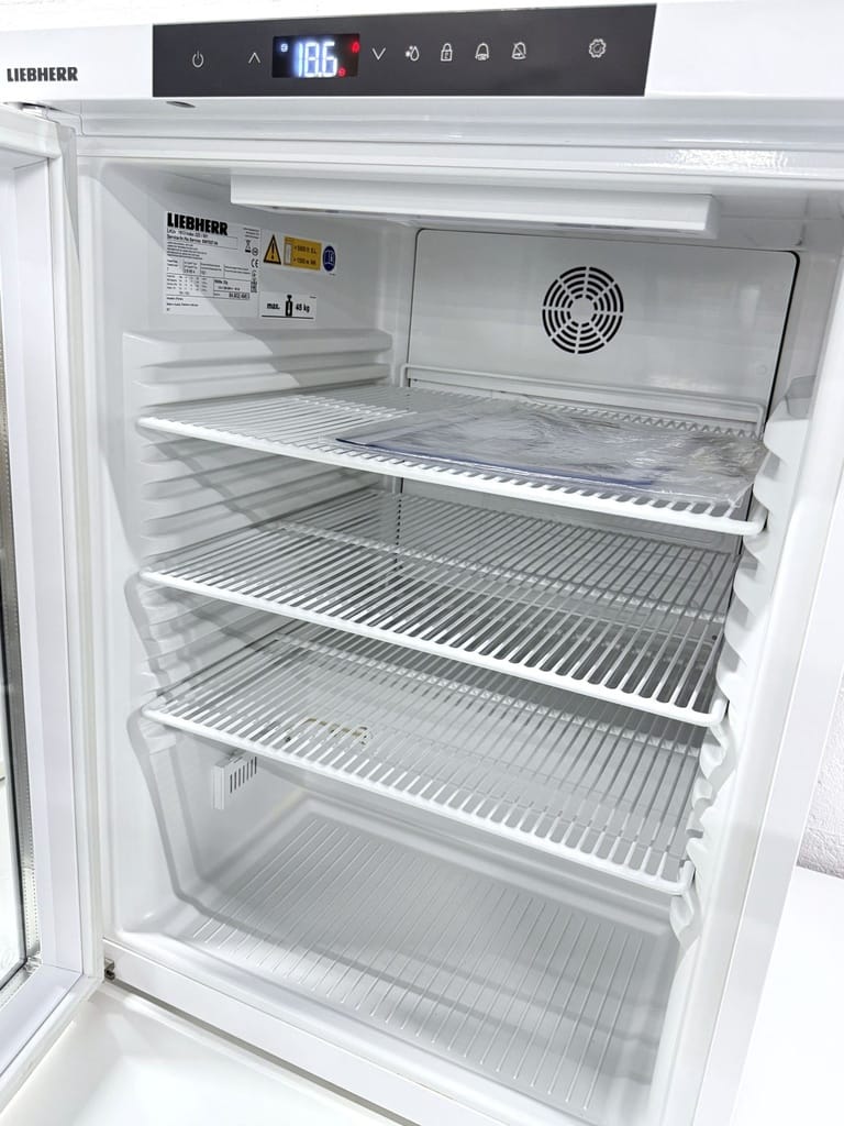 Liebherr LKUv 1613 MediLine is a compact under-counter laboratory refrigerator with an insulated glass door, designed for safe, temperature-stable storage of pharmaceuticals, vaccines, and lab samples.