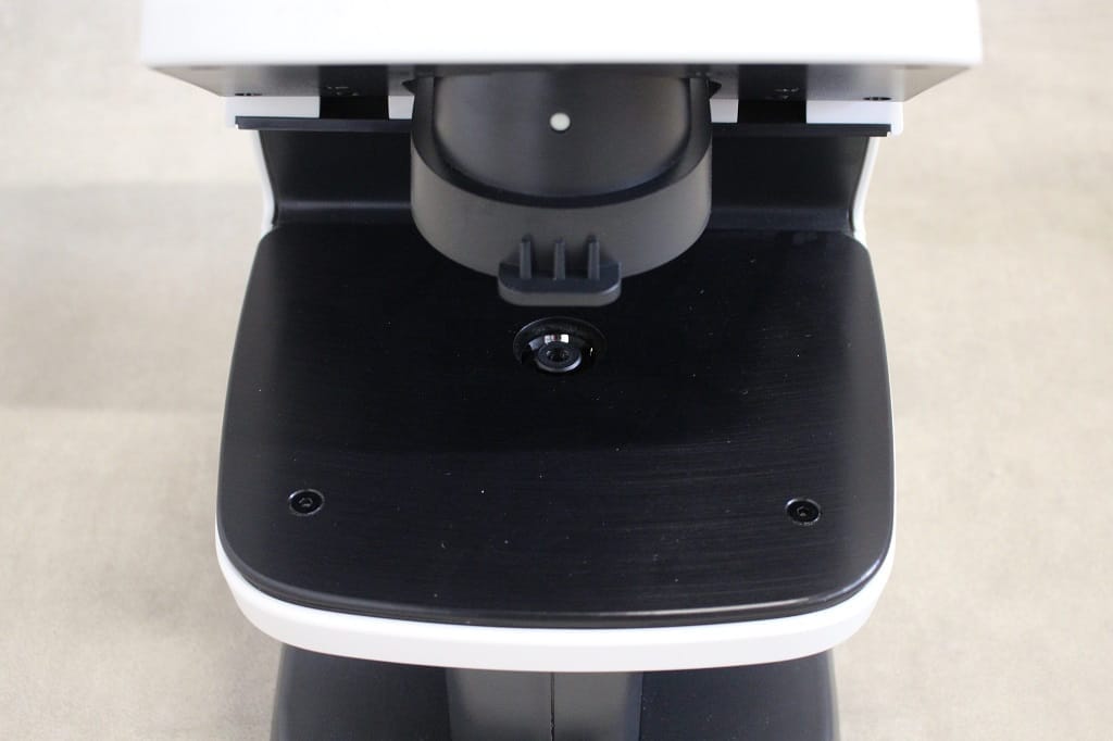 - Objectives: numerical aperture = 0.45, fixed 20X flat fluorite, working distance = 5.9 mm