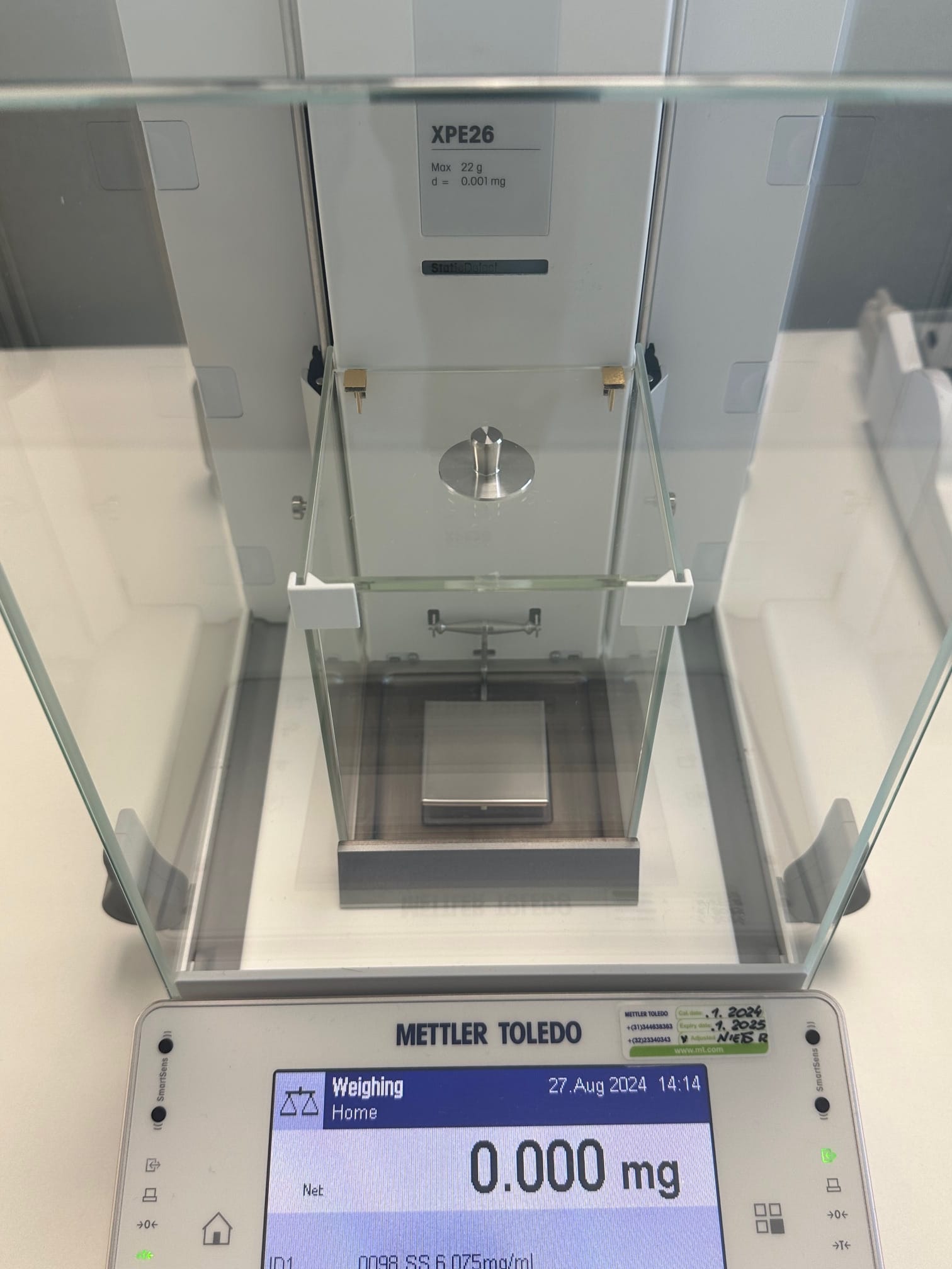 Minimum sample weight (5% load, k=2, u=1%): 0.14 mg