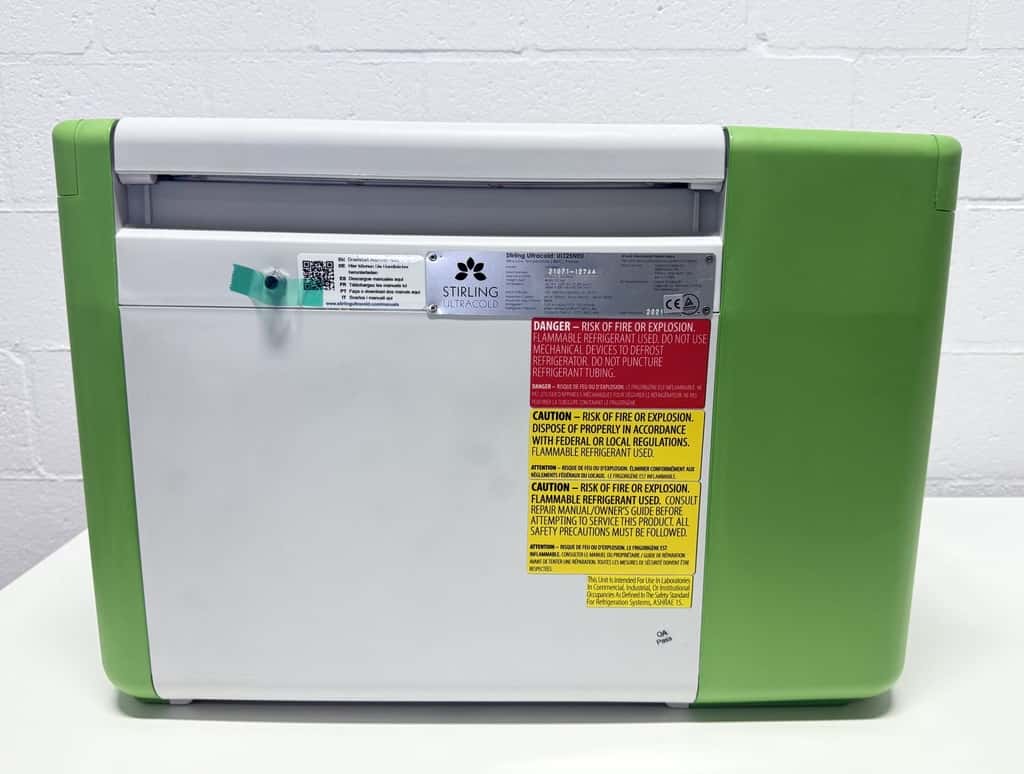 The Stirling ULT25NEU is a compact, lightweight, and portable -80°C freezer. It is ideal for clinical trials and transporting biological medicines, specimens, and samples. The -80°C transport box is equipped with 100% natural refrigerants and can be connected to both 230V and 12V power sources.