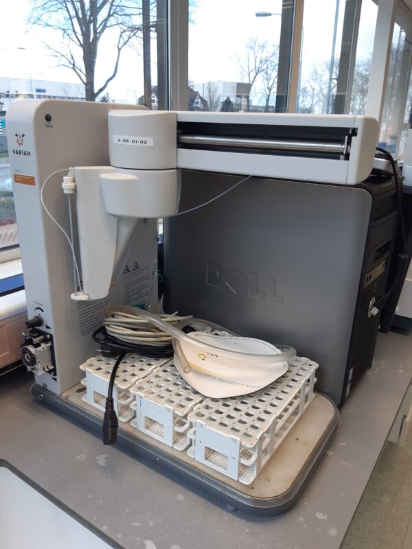 Varian Cary 300 Bio Uv-Visible Spectrophotometer with Sample Preparation System SPS 3 from 2005, including PC and software. It comes from a water laboratory and has always been well maintained. Due to temporary standstill, the device needs to be maintained before use (e.g. cleaning the mirrors).